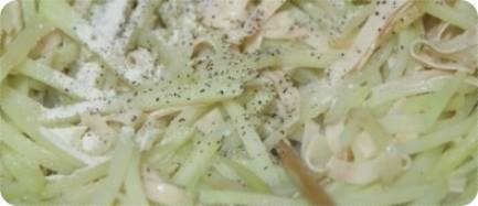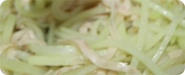 위 팁처럼 하고난 뒤 감자채가 투명해졌따면 이제 청주를 넣고 다시 또 중불에서 빠르게 볶아주도록 합니다. 이 때부터는 계속 뚜껑을 덮지 않고 열어두도록 합니다. 그 다음 소금과 후추로 간을 한 다음에 다시 한 번 또 섞어주도록 합니다. 다만 감자채를 너무 세게, 그리고 자주 섞어주다 보면 감자채가 익으면서 다 부스러지기 때문에 타지 않을 정도로만 지켜본 뒤 가끔씩 볶아주도록 합니다.