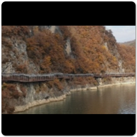 첫 번째 추천 장소는 단양강 잔도입니다. 위치는 단양군 적성면 애곡리 산 18-15에 위치하고 있습니다. 이곳은 산책로 데크길이 잘 조성되어 있어서 강을 보면서 산책할 수 있다는 장점이 있습니다. 이곳은 스카이워크를 기준으로 상진대교까지 대략 1.2km 구간을 연결해주고 있습니다.