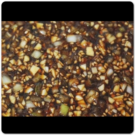 이제 가장 중요한 순간입니다. 양념장은 4인분 기준으로 간장 20스푼, 설탕 10스푼, 참기름 4스푼, 마늘 2개 다진 것, 대파 2개 다진 것, 깨소금, 후추 넣어주면 됩니다. 4인분 기준이므로 2인 기준으로 할 때는 알려드린 양에서 나누기 2씩 해서 만들면 됩니다. 설탕은 간장 분량의 반만 하면 되지만 평소 단 것을 좋아하지 않는다면 이보다 더 줄여도 상관없습니다.