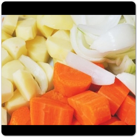 돼지갈비찜 맛있게 만드는 법 기본 야채를 모두 다졌다면 이제 채소를 손질할 차례입니다. 먼저 당근과 감자는 밤톨만한 크기로 토막내주면 됩니다. 그리고 양파는 결대로 썰어주면 됩니다. 밤톨만한 크기로 썰어줘야 익히는 과정 중 덜익은 부분 없이 푹 잘 익힐 수 있습니다.