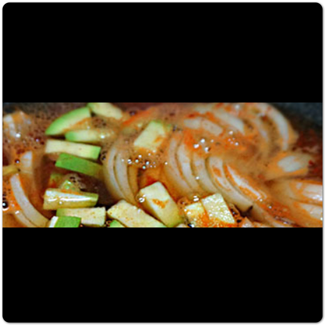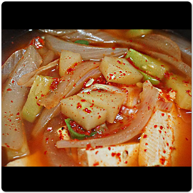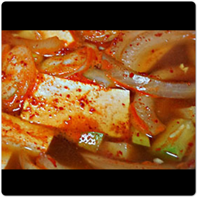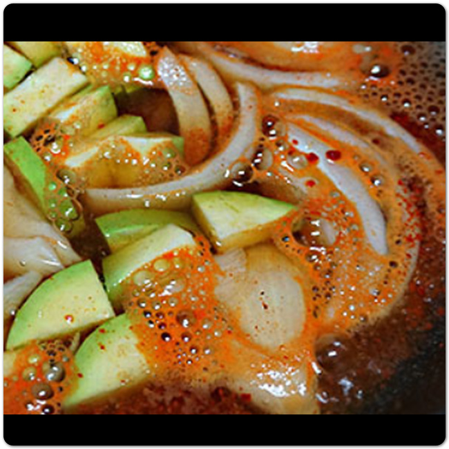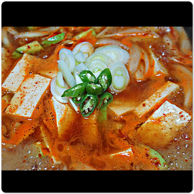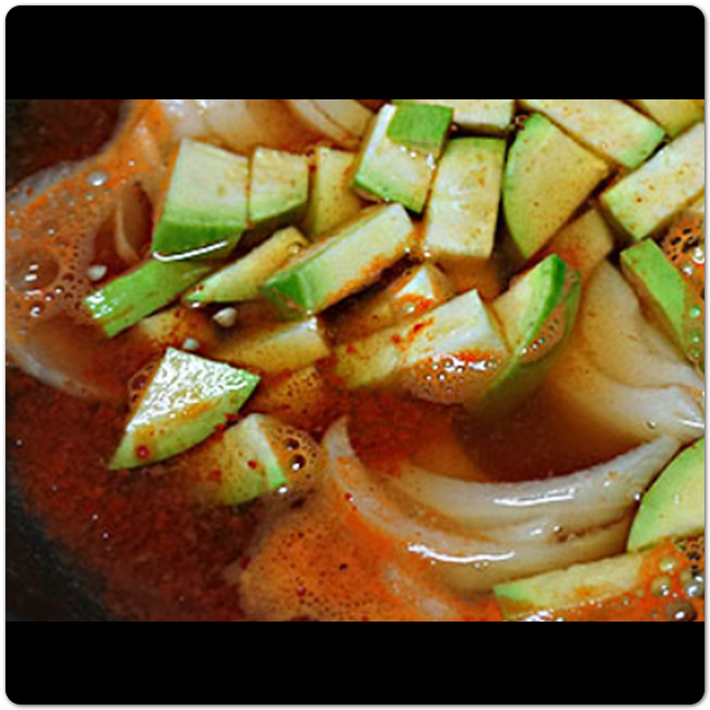이때도 마찬가지로 집에 있는 고춧가루가 너무 맵다면 2큰술이나 1큰술 반 정도 씩 넣어주면 됩니다. 조금씩 넣으면서 간을 맞추면 됩니다. 간이 맞았다면 함께 손질했었떤 애호박과 양파도 넣어주도록 합니다. 그리고 끓여주다가 가장 마지막에 두부를 넣어주면 됩니다.