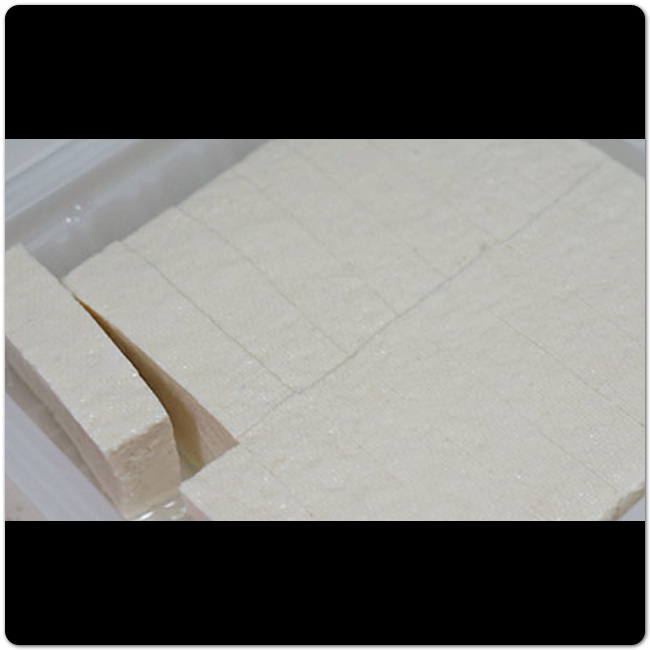 멸치 육수를 끓이고 있을 때 다른 재료를 손질해주면 됩니다. 일단 두부는 먹기 좋은 크기로 썰어서 준비하면 됩니다. 팩에 들어가있는 상태에서 칼로 먹기 좋은 크기로 쓱쓱 썰어주면 됩니다.
