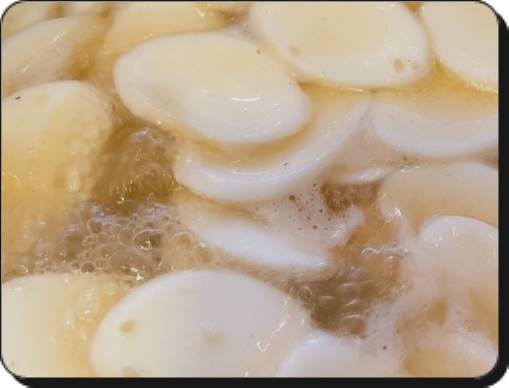 팁) 굳이 냉동해놓은 떡이 아니더라도 떡을 물에 30분 정도 담가놓는 이유는 나중에 떡국으로 끓였을 때 떡 자체가 훨씬 쫄깃해지기 때문입니다. 이 과정을 생략하게 되면 떡국 끓일 때 좀 더 오래 끓여야 하고 쫄깃한 맛보다는 떡끼리 달라붙는 현상이 있으니 꼭 30분 정도는 넣어주도록 합니다.