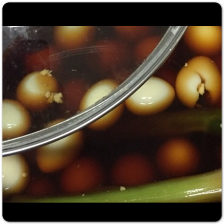 메추리알 장조림 만드는법 대파를 건져낸 뒤 국물이 여전히 많이 남았다면 다시 뚜껑을 덮고 약불에서 계속 졸이면 됩니다. 메추리 색깔이 간장 소스를 머금을 때까지, 국물이 졸아들 때까지 충분히 끌형주면 됩니다. 중간중간 열어서 확인 후, 원하는 간장 소스 비율이 남았다면 그때 불을 끄고 잔불에 1~2분 정도 더 놔두도록 합니다.