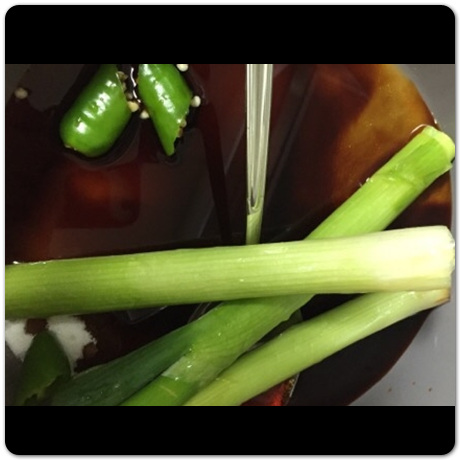 메추리알 장조림 만드는법 메추리알까지 삶았다면 이제 간장소스를 냄비에 넣고 그 안에 대파 밑둥 위주로 3개 정도 넣어줍니다. 그 다음 맵게 먹고 싶다면 청양고추를 통째로 2개 정도 넣어주면 됩니다. 굳이 배 가르지 않아도 됩니다. 그 다음 통마늘도 5개 정도 넣어주고 후추도 1스푼 정도 뿌려주면 됩니다. 그 뒤, 물은 대략 종이컵 기준으로 3컵 정도 넣어주면 됩니다.