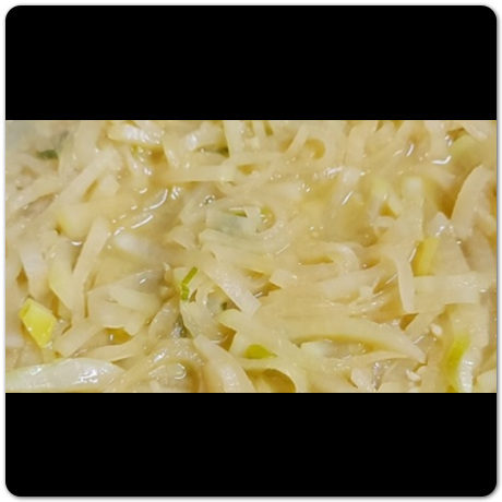 무나물 맛있게 하는 법 무도 썰고 야채도 모두 썰었다면 이제 재료를 볶을 차례입니다. 이 때 멸치 육수를 활용해서 볶아줘도 좋지만, 쌀뜨물을 활용하면 좀 더 맛있게 만들 수 있습니다.