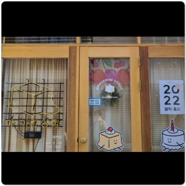 부산 서면 가볼만한곳 두 번째 추천 장소는 마가린 상점입니다. 위치는 부산진구 전포대로 221입니다. 운영 시간은 낮 12시부터 저녁 7시까지 운영하며, 일요일은 오후 5시면 마감됩니다. 또한, 매 주 월요일은 휴무이므로 이 점 참고하고 방문하시기 바랍니다.