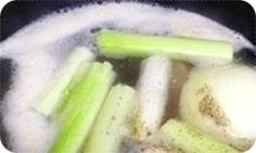 두 번째 과정입니다. 일단 고기를 먼저 삶아줍니다. 이것도 바로 전기밥솥에 푹 삶아도 되고 혹은 냄비를 이용해도 됩니다. 만일 전기밥솥에 사용한다면 고기 넣고 대파 3개, 양파 절반 넣고 물 부은 후 백미 기능으로 30분동안 놔두도록 합니다.