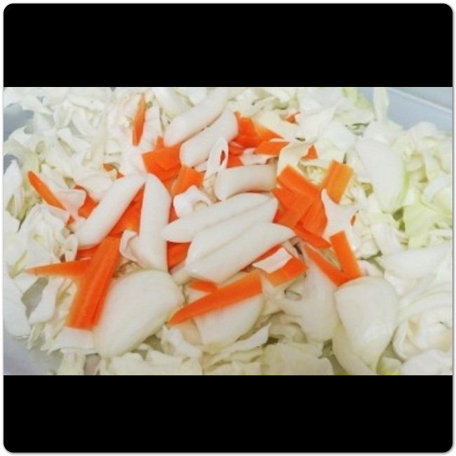 순대볶음 만드는 방법 순대 써는 작업까지 완료했다면 이제 채소를 준비하도록 합니다. 볶음에 필요한 채소는 양배추와 양파 당근 정도면 됩니다. 양배추는 일단 흐르는 물에 깨끗하게 세척하고 양파 및 당근도 깨끗하게 세척합니다. 그 다음, 먹기 좋은 크기로 채썰어서 놔둔 후 체반 위에 올려서 물기를 제거해주면 됩니다.