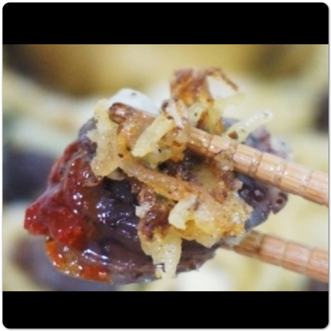 순대볶음 만드는 방법 이제 가장 마지막입니다. 순대가 있는 철판 위에 들깨가루를 뿌렸어도 양념장에도 또 뿌려야 더더욱 맛있는 요리가 됩니다. 숙성해뒀던 양념장을 냉장고에서 꺼낸뒤 들깨가루는 2스푼 정도 넣어서 잘 저어주면 됩니다. 이렇게 만든 양념장을 활용하는 방법은 부먹과 찍먹입니다.
