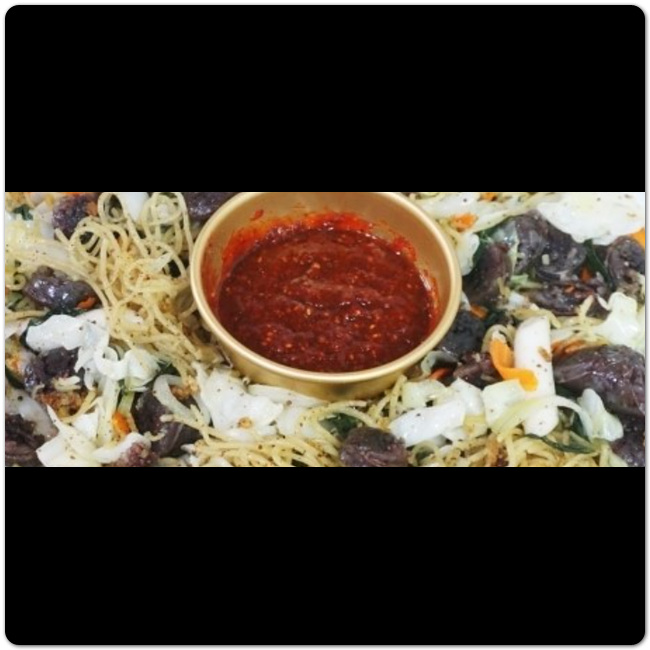 부어서 먹고 싶다면 철판 위에 그대로 부어서 다시 휘저으면서 고루고루 양념을 묻혀주면 되고, 만일 찍먹으로 먹고 싶다면 굳이 그럴 필요 없이 철판 위에 있는 볶음 요리들을 양념장에 찍어서 먹으면 됩니다. 기호에 맞게 적절하게 잘 활용하면 됩니다.