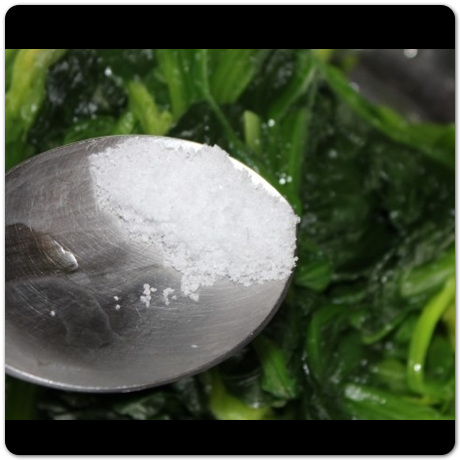 굵은 소금이 없다면 그냥 일반 소금도 괜찮으니 물에 소금을 뿌리고 끓기 시작하면 그 때 시금치를 넣으면 됩니다. 너무 오래 데치면 시금치가 아삭아삭한 느낌이 없으므로 10~20초 정도 데친 후 바로 건져내주도록 합니다.