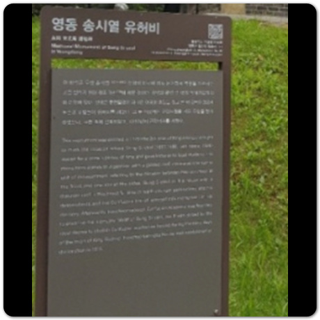 참고로 이곳의 한천정사는 과거 송시열 선생이 주변 경관을 보며 학문을 수양하며 제자들 글을 가르쳤던 곳이기도 합니다. 그리고 송시열 유허비는 조선 정조 3년에 세워진 비각으로 한천정사와 송시열 유허비 모두 눈에 담고 오시기 바랍니다. 이상 영동 가볼만한곳 베스트10이었습니다.