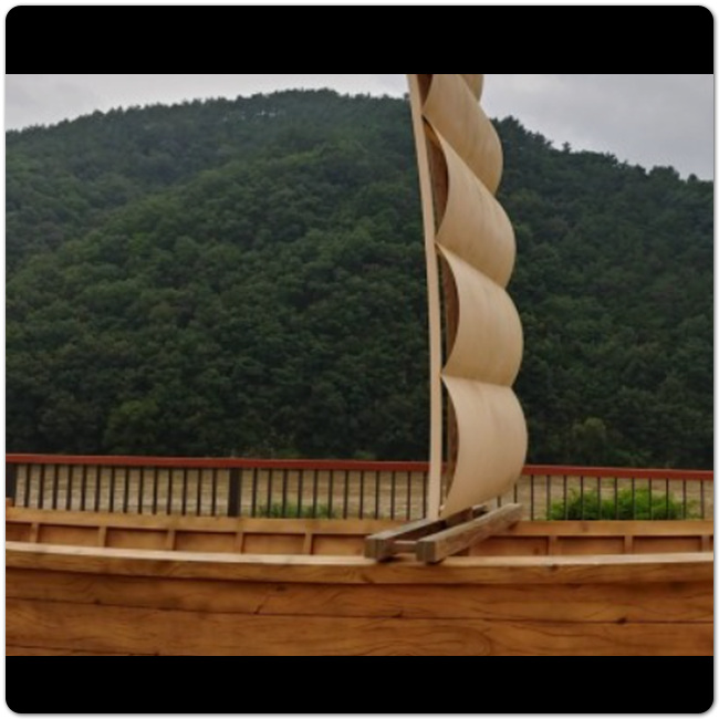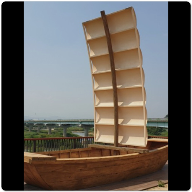 과거 이 삼강 황포돛배는 실제로 운영됐던 배이며, 현재는 조형물로 전시되어 있어서 바로 앞에서 사진찍을 수 있습니다. 바로 앞 삼강이 흐르고 있어서 강 흐르는 것도 구경할 수 있고, 다양한 포토존도 여기저기 마련되어 있으니 예천에 간다면 삼강 나루터 다녀가보시기 바랍니다.
