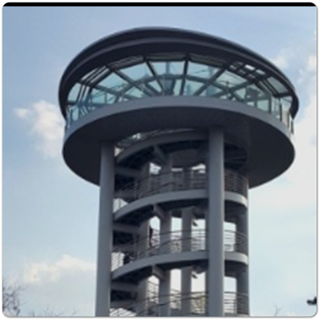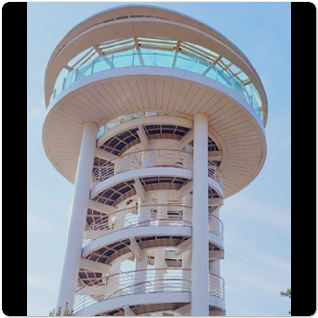 특히, 데크길이 지그재그 길로 되어있는 점이 이 공원의 특징이며 전망대 또한 나선형으로 이루어져 있습니다. 나선형 전망대에서 일몰하는 광경 보는 것도 멋지므로 오후 즈음 찾아가는 것도 괜찮습니다. 전망대 특성상 360도로 여기저기 바라볼 수 있으니 예천에 간다면 하늘자락공원 전망대도 방문해보시기 바랍니다.