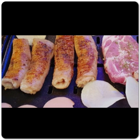 그릇에 터져 흐를듯한 자태의 계란찜이 함께 나와서 삼겹살과 함께 먹으면 정말로 맛있습니다. 삼겹살 외에도 버섯이나 김치 등 다른 반찬들도 함께 구울 수 있는 판도 따로 마련되어서 나오므로 고기와 함께 곁들여서 드시기 바랍니다.