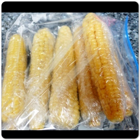 옥수수 삶는 방법 만일 찜기를 활용하지 않고 삶았다면 옥수수를 찌고 남은 물을 버리면 안됩니다. 냉동실에 얼릴 때 찌고 남은 물도 함께 같이 넣어서 보관해야 합니다. 이렇게 옥수수 지퍼백에 넣기 전에 찌고 남았던 물도 함께 넣어서 냉동실에 얼려놓으면 1년 정도는 거뜬히 보관할 수 있습니다.