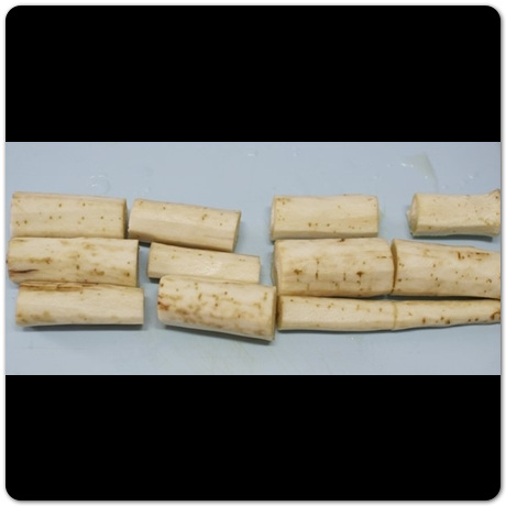 필러로 손질한 우엉은 이제 적당한 크기로 썰어주면 됩니다. 저는 4등분 정도로 해서 적당한 크기로 나눴습니다. 아이와 함께 먹을 용도면 조금 더 작은 크기로 썰어줘도 됩니다.