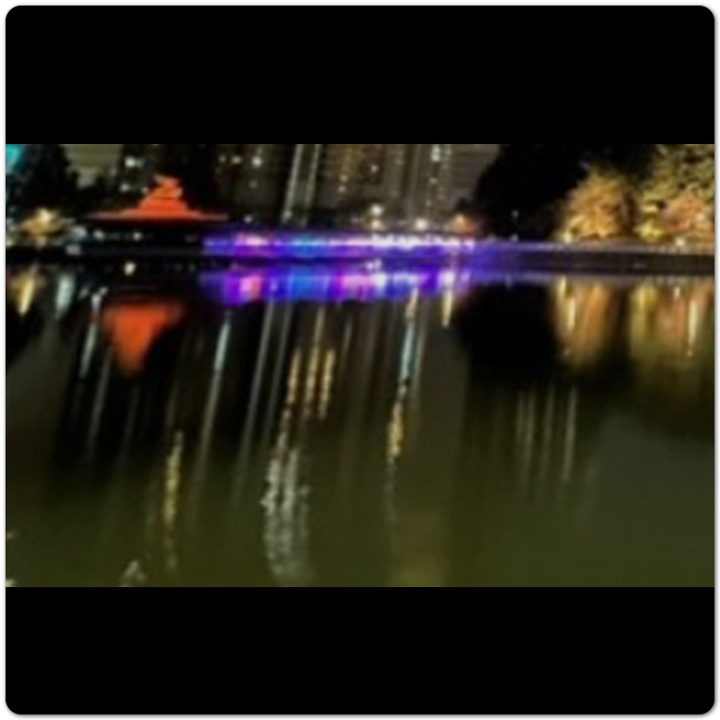 일몰하고난 이후, 형형색색의 빛이 다리 여기저기에 나오면서 강에 비친 다리 모습을 보는 것도 힐링됩니다. 특히, 이곳은 착시현상을 만들 수 있는 트릭아트 포토존도 있으니 거기에서 사진도 찍고 오시기 바랍니다.