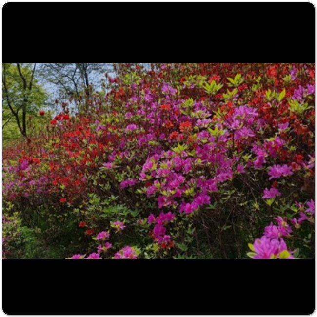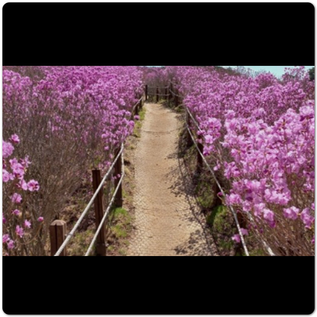 이곳에서 피는 철쭉은 다른 곳에서 피는 철쭉보다 유독 진한 색을 띄고, 무리짓는 군락 형태를 보여줍니다. 꽃 뿐만 아니라 사진 찍을 수 있는 조형물도 있으니, 그곳에서 사진 찍으면 바로 옆이나 뒤 등 만개한 철쭉과 함께 사진을 찍을 수 있습니다.