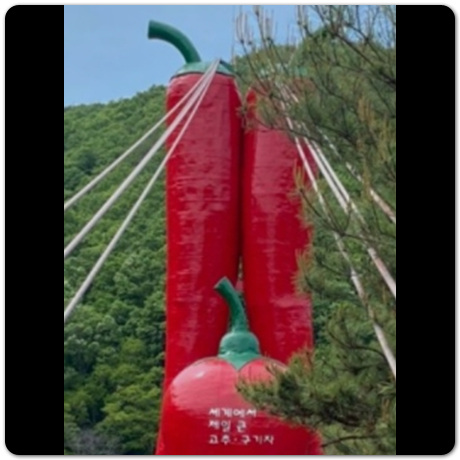 출렁다리 입구는 매점이나 식당도 있습니다. 출렁 다리 길이는 270m로, 들어가는 입구부터 양 옆에 나무들이 즐비해서 주변 보는 경관이 참 좋습니다. 이곳은 2009년 7월에 완공된 곳으로 청양의 특산품인 구기자와 고추를 형상화해놓았습니다. 천장호 출렁다리 가서 주변 경관 보며 힐링하고 오시기 바랍니다.