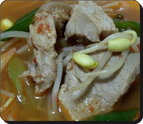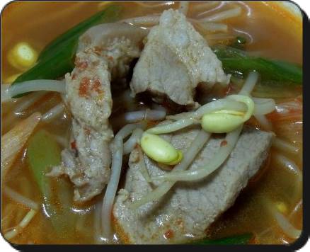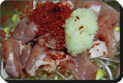 콩나물국 맛있게 끓이는 법 오늘의 핵심은 바로 목살입니다. 이 목살이 끓을 때 육수가 저절로 나오면서 맛있는 콩나물국이 완성되는 셈입니다. 콩나물에 물을 붓고난 뒤 미리 밑간을 한 돼지고기와 고춧가루를 1스푼 넣고 다진마늘도 1스푼 넣으면 됩니다. 굳이 목살이 아니더라도 돼지고기의 어느 부위든 상관없습니다. 국거리용 앞다리를 활용해도 된답니다.
