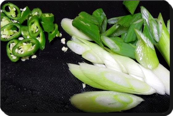 이제 재료들을 다 넣었따면 뚜껑을 덮고 냄비가 들썩거릴 때까지 계속 끓여주면 됩니다. 콩나물국의 핵심은 다 끓을 때까지 뚜껑을 열면 안된다는 점입니다. 중간에 냄비 뚜껑을 열면 콩나물 비린내가 계속 납니다. 그래서 처음부터 뚜껑을 아예 열고 끓이거나 저처럼 뚜껑을 덮고 끓인다면 들썩 거릴 때까지는 열지 않도록 합니다. 이렇게 콩나물국을 끓이고 있을 동안 국에 넣을 대파와 청양고추를 준비하도록 합니다. 이미 집에 있는 고춧가루가 충분히 맵다면 청양고추는 넣지 않아도 됩니다.