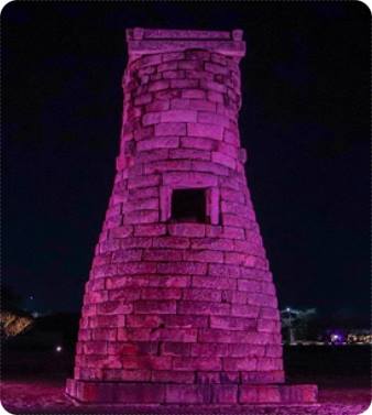 여기도 대릉원 바로 맞은편에 위치하고 있으므로 가까운 코스로 동선짤 때 첨성대까지 함께 이동하면 좋습니다. 특히, 첨성대는 저녁이면 야경이 매우 예쁜 곳으로 유명합니다. 저녁에 첨성대를 방문하면 첨성대에 조명이 들어와서 낮에 봤을 때와는 또 다른 느낌을 받을 수 있으니 첨성대 가까운 곳에 숙소를 마련하거나 당일치기 여행이라면 저녁에 조명 켜진 첨성대 보러 다시 방문해볼 것을 추천합니다.