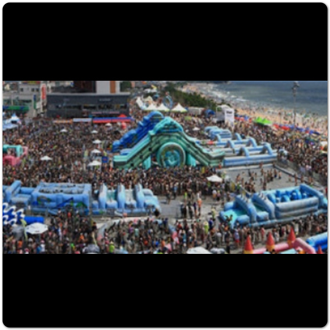 다음 체험은 머드 인 월드 베스트 비치존입니다. 이것 또한 앞의 머드 워터 파크존처럼 체험장에서 진행되고 어린아이 입장시 부모 동반은 필수입니다. 해외 유명 해변을 테마로 한 테마 공간이 구성되어 있고 dj와 함께 스페셜한 edm 비치 파티가 열립니다.