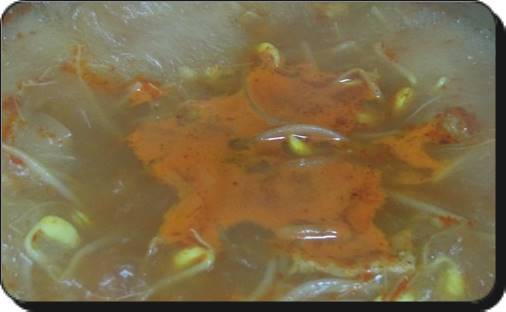 콩나물국 맛있게 끓이는 법 이제 냄비가 들썩들썩 했다면 뚜껑을 열어서 확인합니다. 맛을 봐보고 좀 더 매콤했으면 한다면 고춧가루를 좀 더 추가하면 됩니다. 이제 간은 국간장과 소금으로 하면 됩니다.